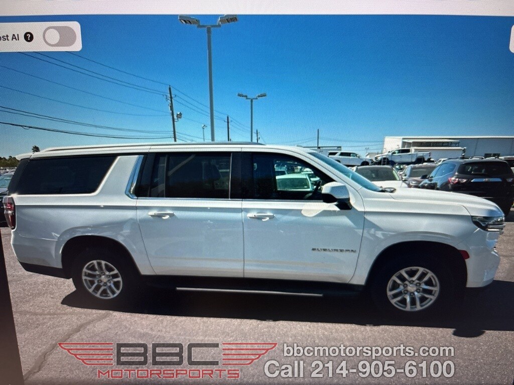 Suburban LT. Heated Leather Bucket Seats. Bose Surround Sound, 10.2" Color Touchscreen, Apple CarPlay & Android Auto, SiriusXM Radio, USB Input. HD Surround Vision Camera. Running Boards. Tow Package. Automatic Emergency Braking. Hands Free Power Rear Liftgate. Remote Start, Proximity Entry & Push Button Start. Our Indoor Showroom (70,000 sq ft) Is Located In The Medical District Just South Of Mockingbird Two Blocks Off I-35 At The Medical District Exit. Trades Welcomed. Financing Available With Chase, Ally, Capital One. USAA Preferred Dealer. Se Habla Espanol.